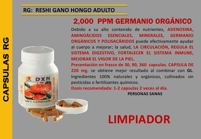 Reishi Gano (RG) es un tipo de esencia formulada a base del hongo Ganoderma